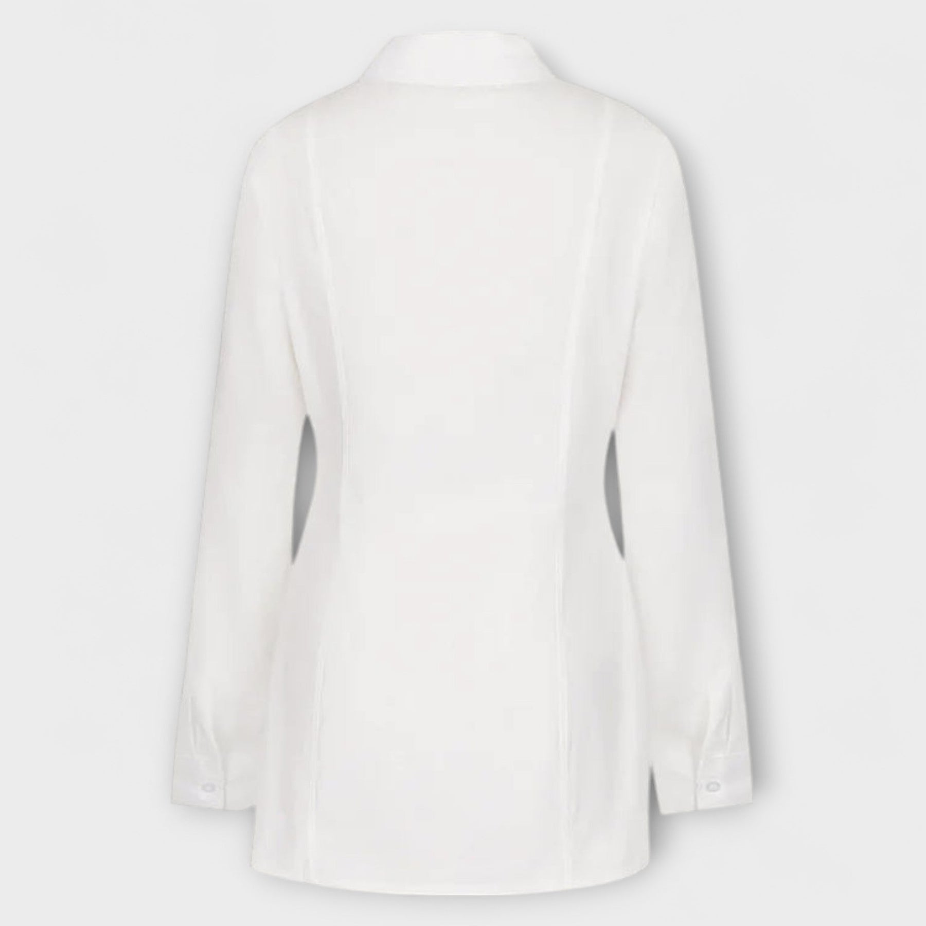 Indie - Bílé plisované šaty s dlouhým rukávem