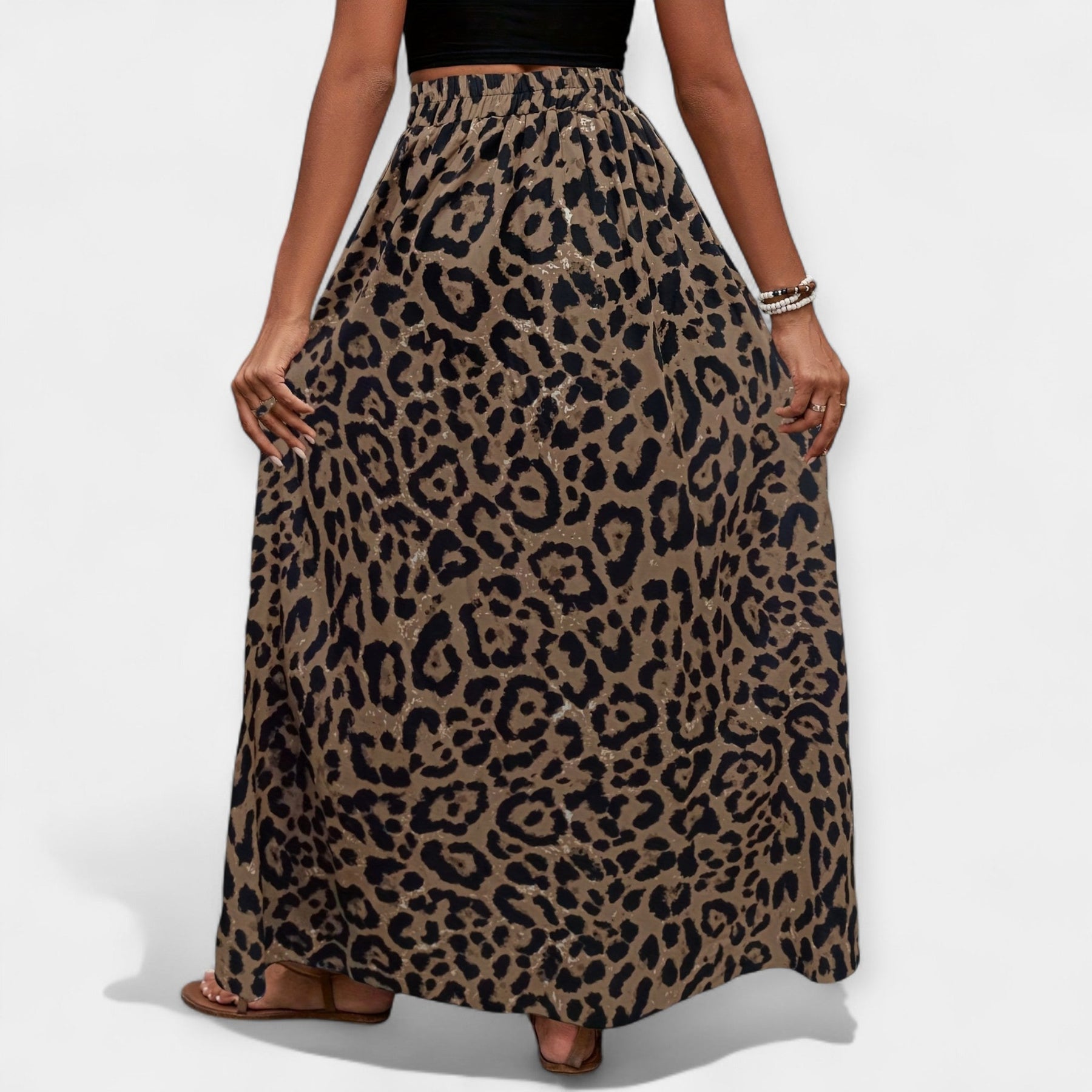 Tato leopardí sukně s dynamickým stylem oslavuje ženskost a je absolutním módním prohlášením pro léto. Rozparek na spodní části dodává pohyb a svůdnost, zatímco pohodlný střih ji činí ideální pro každou chvíli dne.